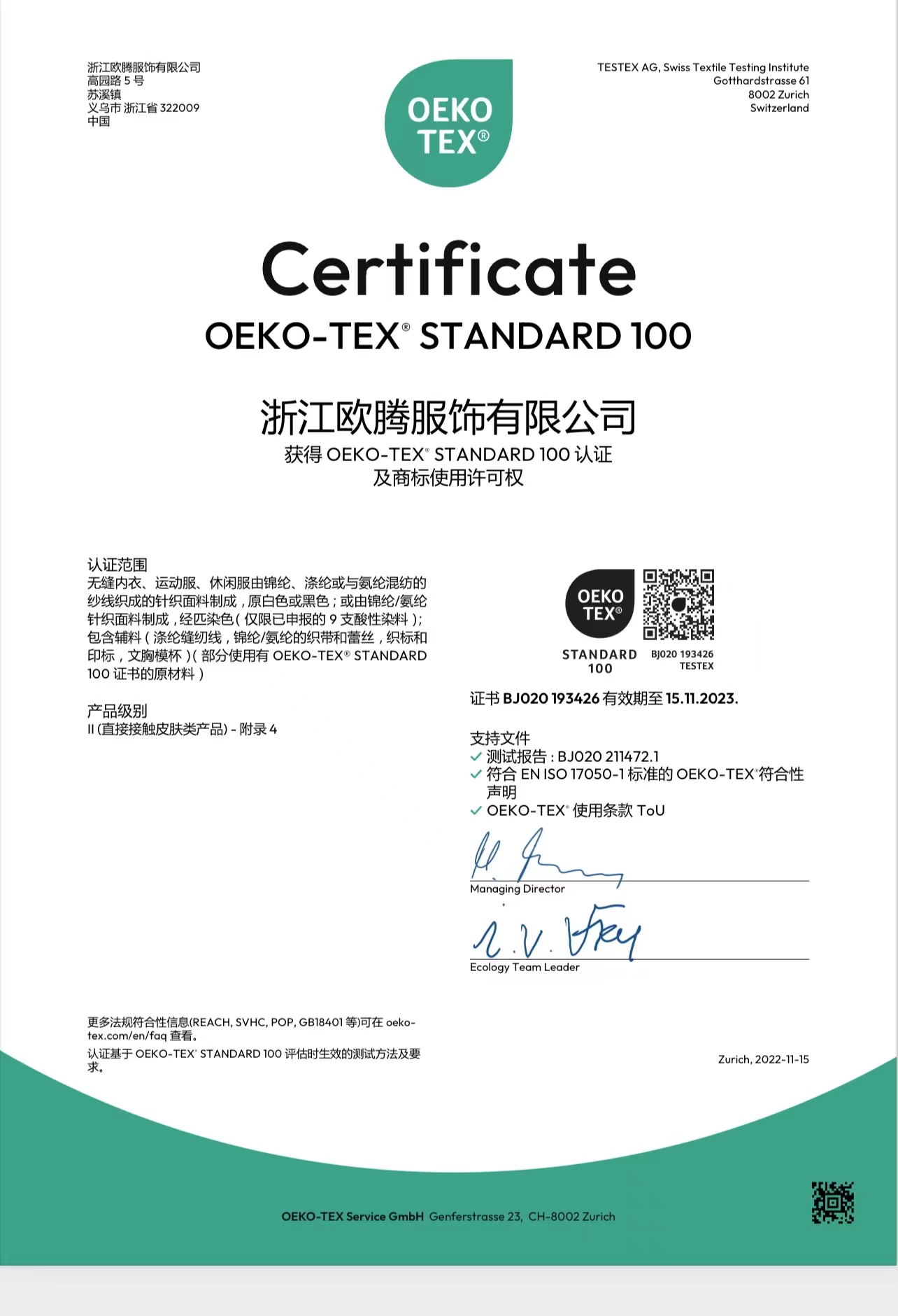 浙江歐騰服飾有限公司位于世界小商品之都-義烏。創(chuàng)立于2015年,是一家專業(yè)生產無縫針織運動服飾和內衣的工貿一體企業(yè),擁有自主出口權。 工廠的占地面積約16000平方米 ,引進了大型圣東尼、高騰等多種先進的制衣設備300余臺。月產能可達90萬件。 歐騰服飾每年投入近百萬資金打樣開發(fā)新產品,有著一支高素質設計、技術員工隊伍。工廠先后通過了ISO 9001質量管理體系認證、BSCI認證、GRS認證、OEKO-TEX國際生態(tài)紡織品認證等多項專利檢測報告。可提供OEM&ODM服務。歐騰服飾以一套完整、科學的質量管理體系,生產的服裝從原材料紗線到成衣,質量完全能夠滿足國內、國際質量要求。獲得了客戶一致好評。工廠先后獲得省科技型企業(yè)、國家高新企業(yè)、義烏市誠信講信用單位、規(guī)上企業(yè)、信用AAA級等榮譽。
